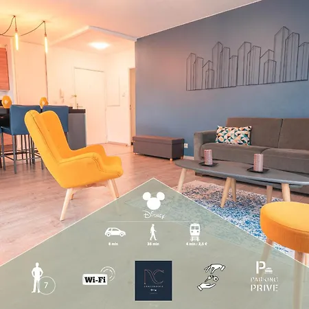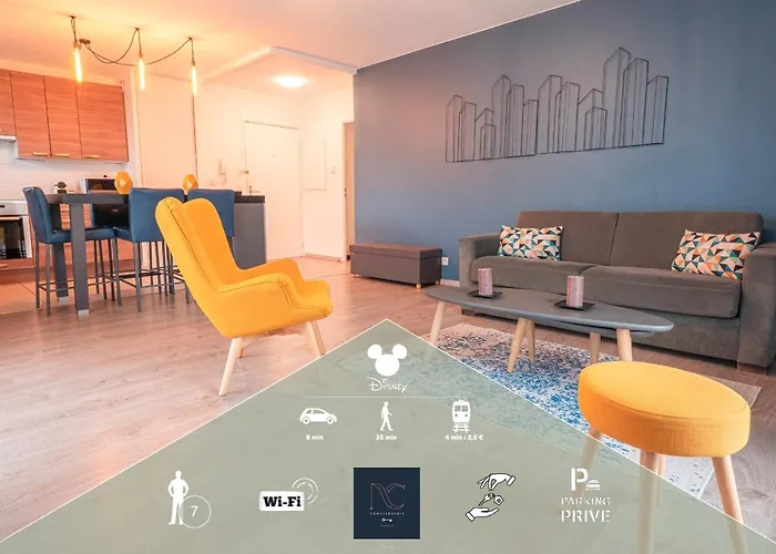 Spacieux| Appartement Disneyland-Paris 7 Pers, Wifi, Parking Privee à Montévrain est situé à 3 km de Golf Disneyland et à 7 minutes à pied du Parc Commercial Le Clos du Chêne.